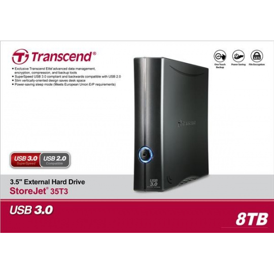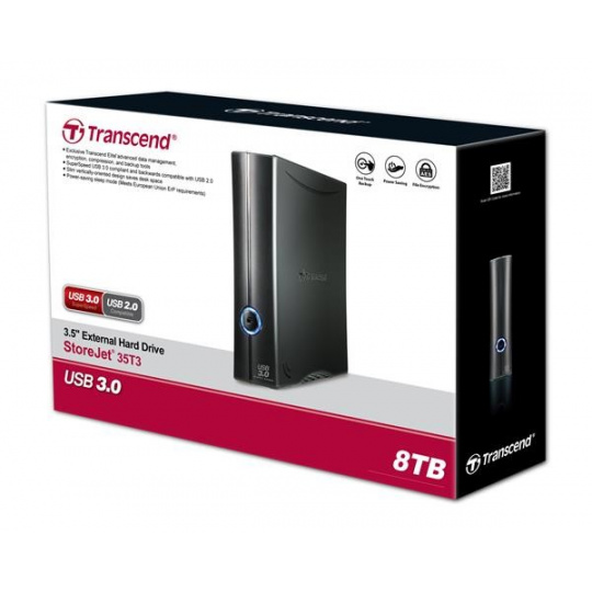 Externý pevný disk TRANSCEND 3,5" USB 3.1 StoreJet 35T3, 8 TB, čierna, Turbo