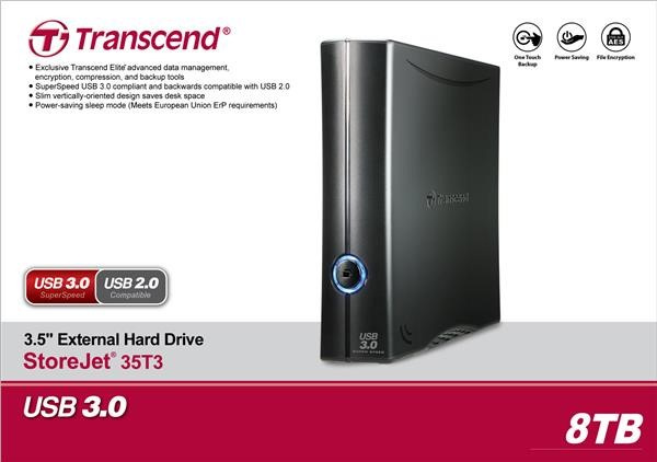 Externý pevný disk TRANSCEND 3,5" USB 3.1 StoreJet 35T3, 8 TB, čierna, Turbo
