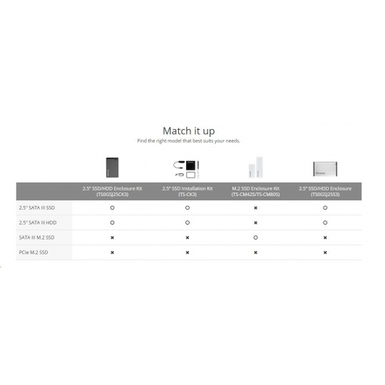 Čo urobíte so starým pevným diskom, ktorý ste odstránili z prenosného počítača? Nevyhadzujte ho, použite ho znova! Transcend's 2.súprava 5" krytu SSD/HDD sa dodáva so všetkými nástrojmi, ktoré potrebujete na opätovné použitie 2.5-palcový pevný disk odstránený z notebooku. Postupujte podľa sprievodcu inštaláciou krok za krokom, kde nájdete užitočné tipy a pokyny na montáž. Súprava je tiež vybavená funkciou zálohovania jedným dotykom, takže si stiahnite softvér Transcend Elite z našej webovej stránky a lepšie spravujte svoje údaje!