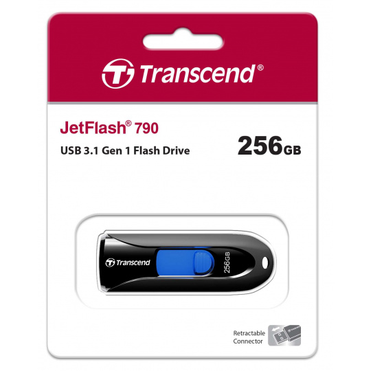 TRANSCEND Flash Disk 256GB JetFlash®790, USB 3.1 (R:100/W:40 MB/s) černá/modrá