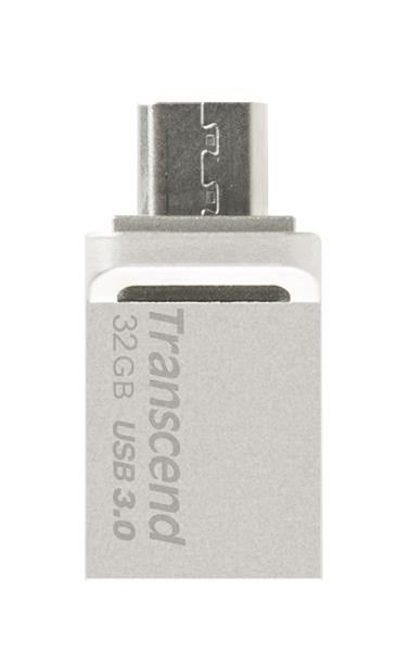 TRANSCEND Flash disk 32GB JetFlash®880S, USB 3.0/micro USB (R:90/W:20 MB/s) strieborná