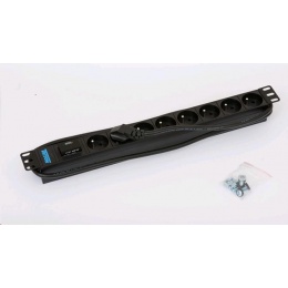 RAB-PD-X07-A1 - 19" rozvádzač 1U 8x230V, varistorový bleskozvod