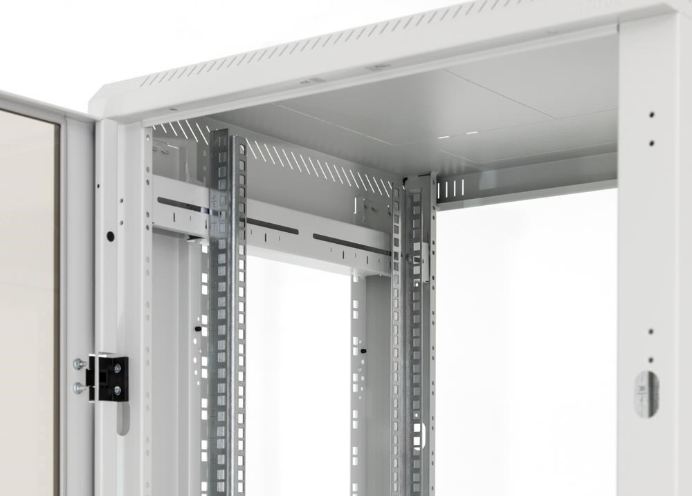 Široké stojiny rámu Široké stojiny rámu sú určené pre dodatočnú montáž príslušenstva, napríklad rozvodných panelov alebo vertikálnych vyväzovacích panelov, ktoré tak nezaberajú 19“ priestor v rozvádzači. Vďaka dôvtipnému uchyteniu nebránia rozvodové paneli v použití vysúvacích serverov ani pri rozvádzačoch širokých 600 mm.