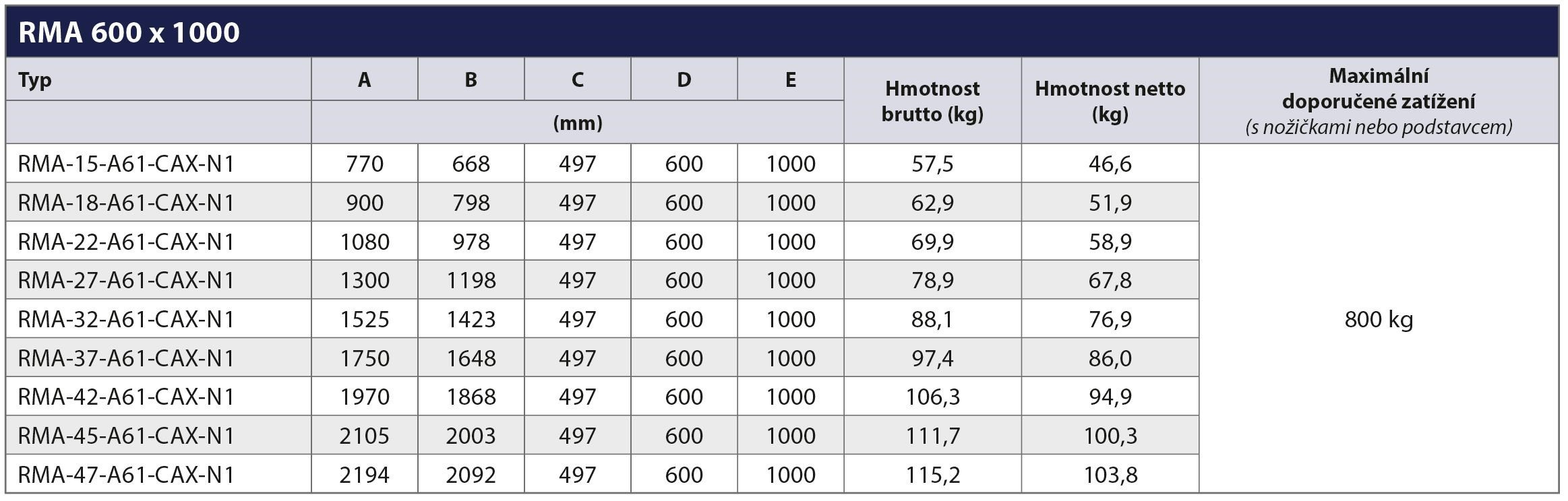 | Maximálne zaťaženie: | 800 kg |