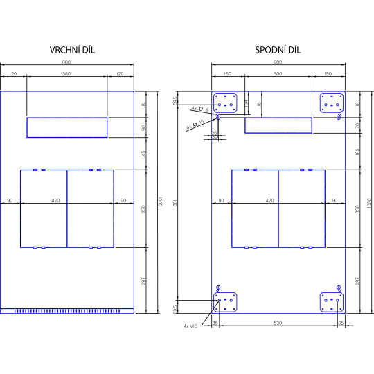 Svárovaný rozvádzač s odnímateľnými bočnicami a zadným krytom, IP20, nosnosť 800 kg