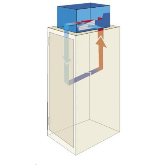Vďaka tomuto usporiadaniu sa okolitý vzduch a vzduch cirkulujúci vo vnútri skrine nemiešajú, čím sa nezvyšuje vlhkosť vo vnútri skrine. Vlhkosť by mohla kondenzovať na povrchu nainštalovaného zariadenia a poškodiť ho alebo zamrznúť vo vnútri klimatizačného zariadenia, čo by mohlo spôsobiť jeho nefunkčnosť, ak by jednotka nebola správne nastavená. Preto je potrebné dbať na správne nastavenie jednotky s ohľadom na okolitú teplotu a vlhkosť. Na zníženie tohto rizika môže byť jednotka vybavená dverným kontaktom, ktorý automaticky vypne kompresor, keď sa otvoria dvere.