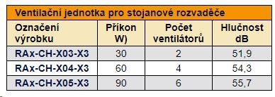 Vetracia jednotka pre rackové skrine – inštaluje sa do uzáveru z vonkajšej strany skrinky, do základne z vnútornej strany skrinky. Pri inštalácii do spodnej časti skrinky je potrebné použiť montážny rám spodnej vetracej jednotky – RAx-CH-Xxx-X1, ktorý sa inštaluje pomocou obojstrannej lepiacej pásky.