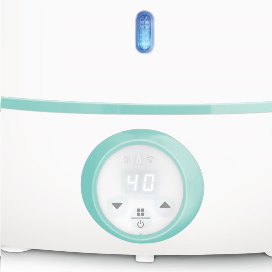 Okrem funkcie rýchleho ohrevu mlieka a detských príkrmov má ohrevník aj funkciu sterilizácie. Nemusíte teda kupovať ďalšie prístroje, aby ste udržali fľaštičky a cumlíky vášho bábätka v čistote. Režim sterilizácie aktivujete trojím stlačením tlačidla na ovládacom paneli. Funkcia Keep Warm sa stará o udržiavanie konštantnej teploty mlieka v fľaši, konkrétne 37 °C. Výšku teploty si podľa potreby môžete upraviť pomocou tlačidiel + a – na ovládacom paneli.