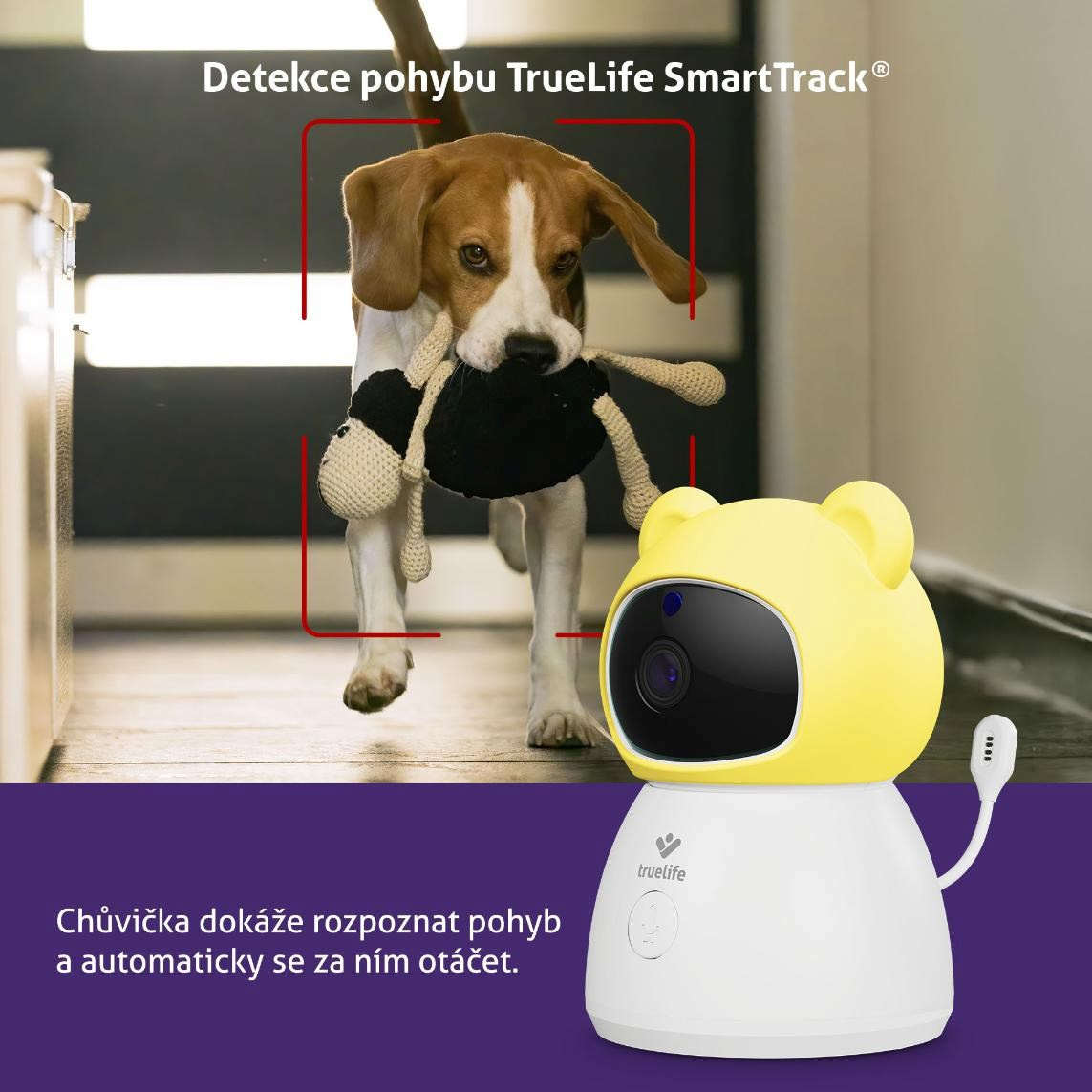Technológia TrueLife SmartTrack® múdro sleduje pohyb a automaticky otáča kameru tam, kde sa niečo deje. Vaše dieťatko tak zostáva v zábere, aj keď práve skúma každý kút izby.