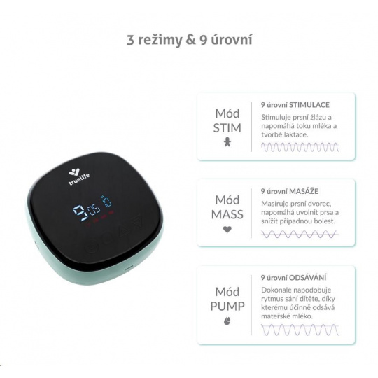 Krome odsávania môžete zvoliť ešte mód stimulácie alebo masáže. U každého módu máte na výber z deväť úrovní, takže si odsávačku nastavíte presne tak, ako vám to vyhovuje.