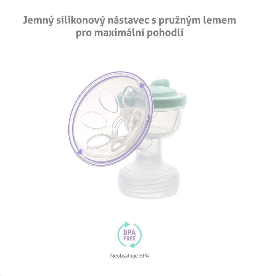 Zjemňujúci silikónový náustok uľahčuje odsávanie, zvyšuje vaše pohodlie a zmierňuje prípadnú bolesť pri dojčení.