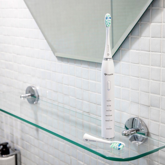 Sonická technológia predstavuje účinný spôsob boja proti zubnému povlaku. Oproti rotačným kefkám je šetrnejšia k zubnej sklovine a vírením vody s pastou pomáha čistiť aj medzizubné priestory. Technológia SonicTrue® funguje na báze jemných vibrácií a oproti manuálnej kefke, s ktorou urobíte približne 600 pohybov za minútu, zvládne TrueLife SonicBrush Clean30 za jednu minútu až 70 000 pohybov pre žiarivý úsmev bez námahy. Hlavica kefky vydrží až 3 mesiace používania, potom sa štetiny začnú strapkať, strácajú účinnosť a navyše sa na nich hromadia baktérie. Našťastie sú hlavice opatrené modrými štetinami, ktoré po 3 mesiacoch vyblednú a vy tak viete, že je načase ich vymeniť.