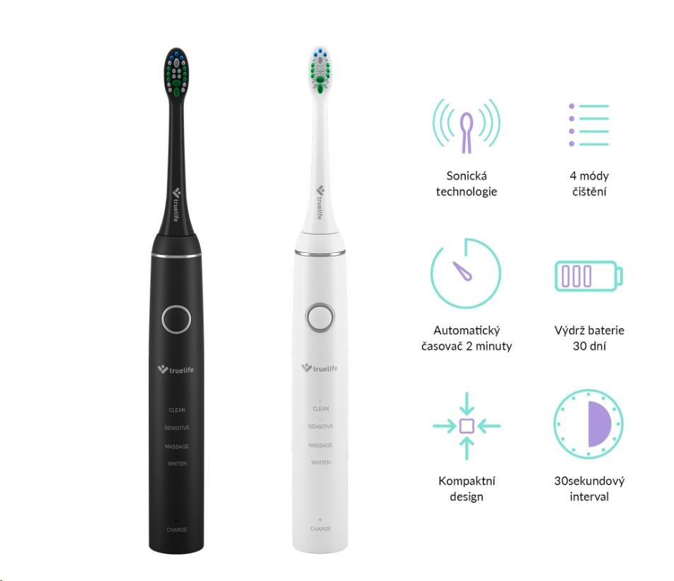 Chcete mať zdravé zuby a ďasná? Nerobiť si stres pri každej návšteve zubára? Na kartáček TrueLife SonicBrush Compact s modernou sonickou technológiou sa môžete spoľahnúť vy, aj váš partner. V sade Truelife SonicBrush Compact Duo totiž nájdete dve sonické kefky (v čiernej a bielej varianto), štyri zubné hlavice, dve cestovné púzdra a dve dobíjacie základne. Doprajte si aj vy exkluzívnu zubnú starostlivosť, vďaka ktorej získate žiarivý úsmev a nedáte šancu škodlivým baktériám. Hlava kefky kmitá vysokou frekvenciou a každým pohybom odstráni maximum zubného plaku. Môžete vyberať zo 4 režimov čistenia. Batéria kefky vydrží až 30 dní.