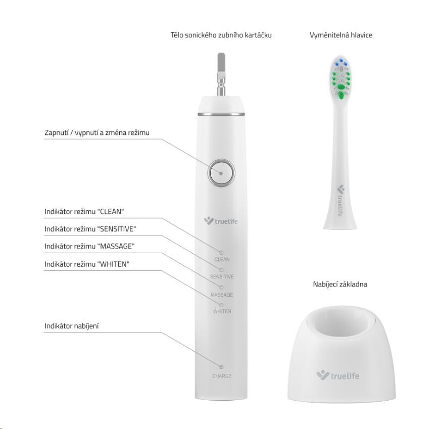 V každom balení TrueLife SonicBrush Compact Duo nájdete 4 hlavice Standard. Odporúčame každé 3 mesiace vymeniť zubnú hlavicu za novú. V ponuke nájdete tri typy. Ak máte zuby veľmi citlivé, skúste hlavice Sensitive, ktoré sú vhodné aj pre deti od 7 rokov. Na čo najbielší úsmev sa vám určite hodia hlavice Whiten.