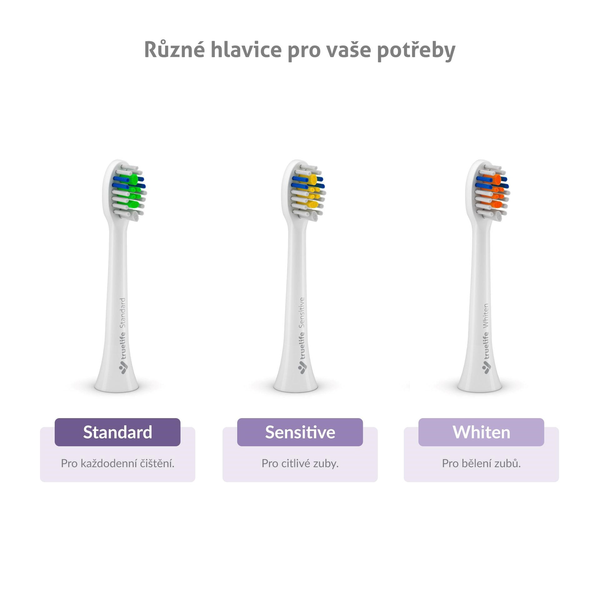 Súčasťou balenia sú 3 náhradné hlavice Compact rôznych typov – Standard na bežné čistenie, Sensitive na citlivejšie zuby a Whiten na bielenie.