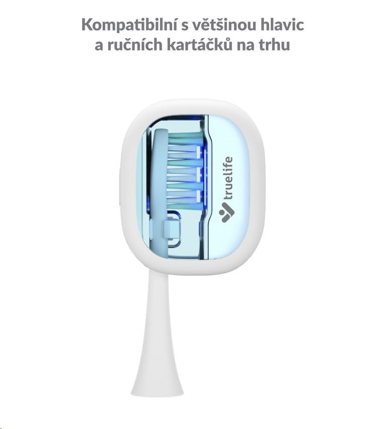 UV sterilizátor od TrueLife je malý prístroj, ktorý efektívne ničí baktérie usadzujúce sa na hlavách zubných kefiek. Vďaka UV-C žiareniu s vlnovou dĺžkou 200-275 nm preniká k membránam baktérií, vírusov a pliesní a zabraňuje ich šíreniu. Je kompatibilný s väčšinou hlavíc elektrických aj manuálnych kefiek na trhu.