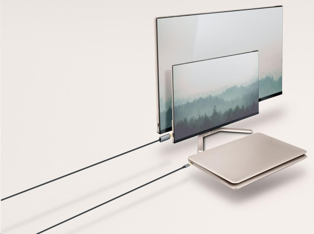 - Funguje na notebookoch a iných zariadeniach s portom USB-C podporujúcim video výstup
