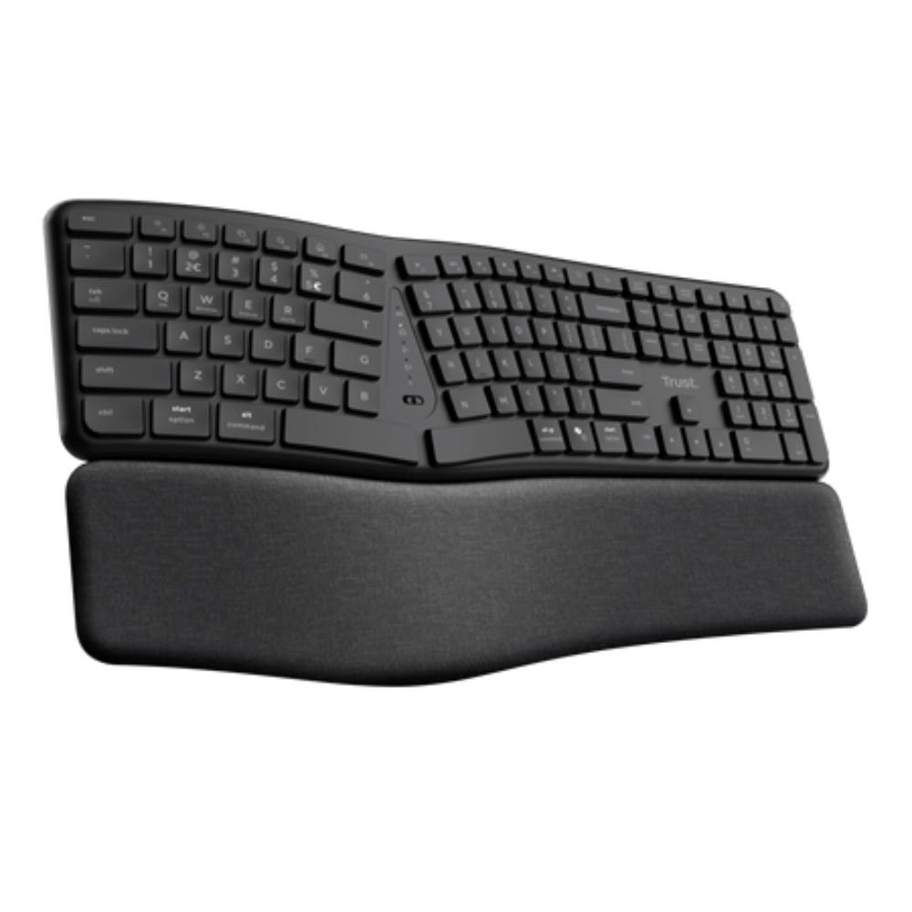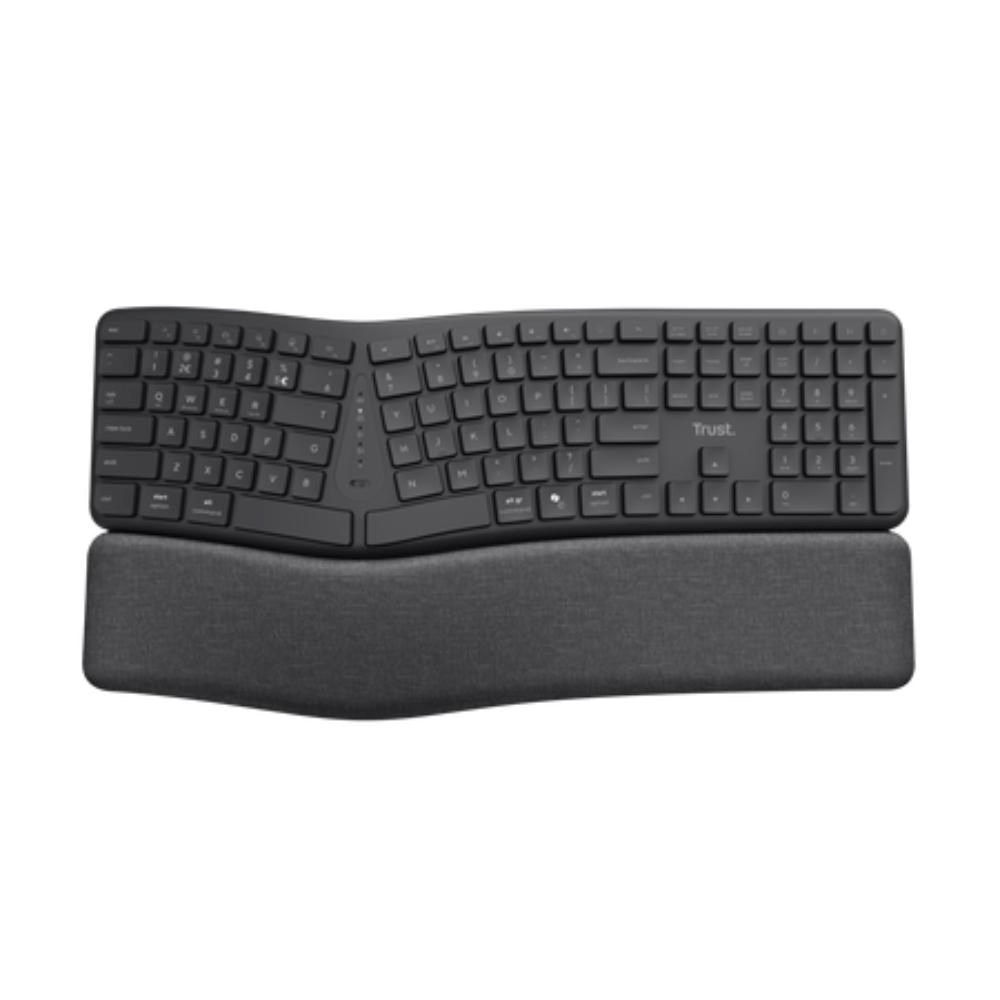 TRUST klávesnice Keyra, Ergonomická, Bezdrátová, US, černá