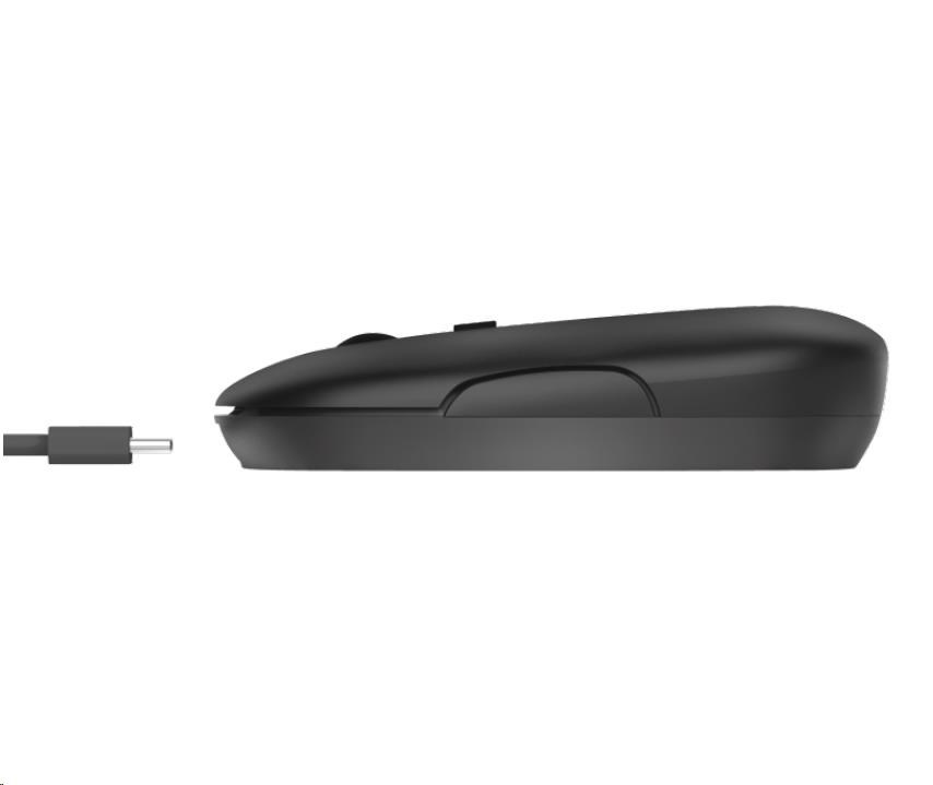 Nabíjateľná bezdrôtová myš s minimalistickým zaobleným tvarom a tichými tlačidlami