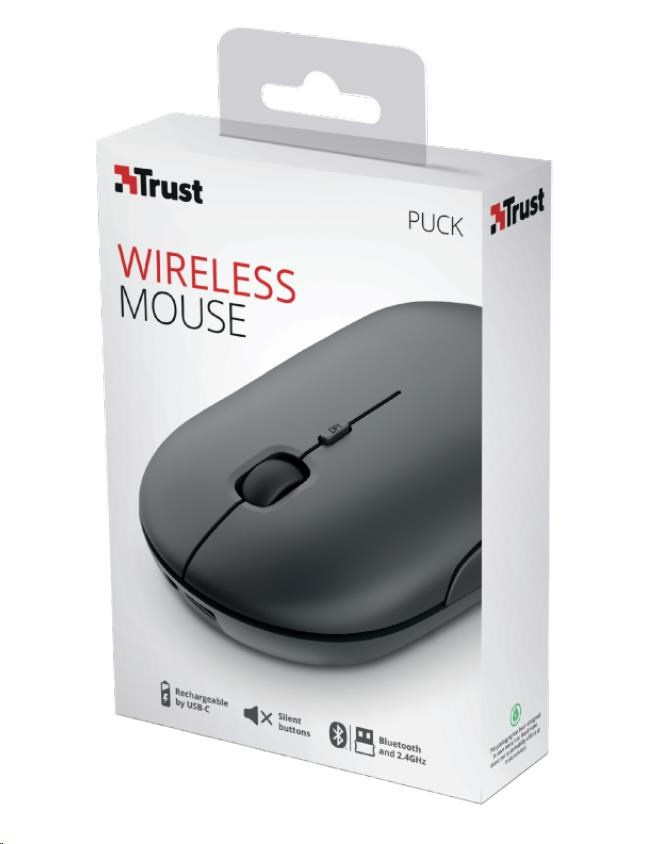 TRUST myš PUCK, bezdrôtová, USB, čierna