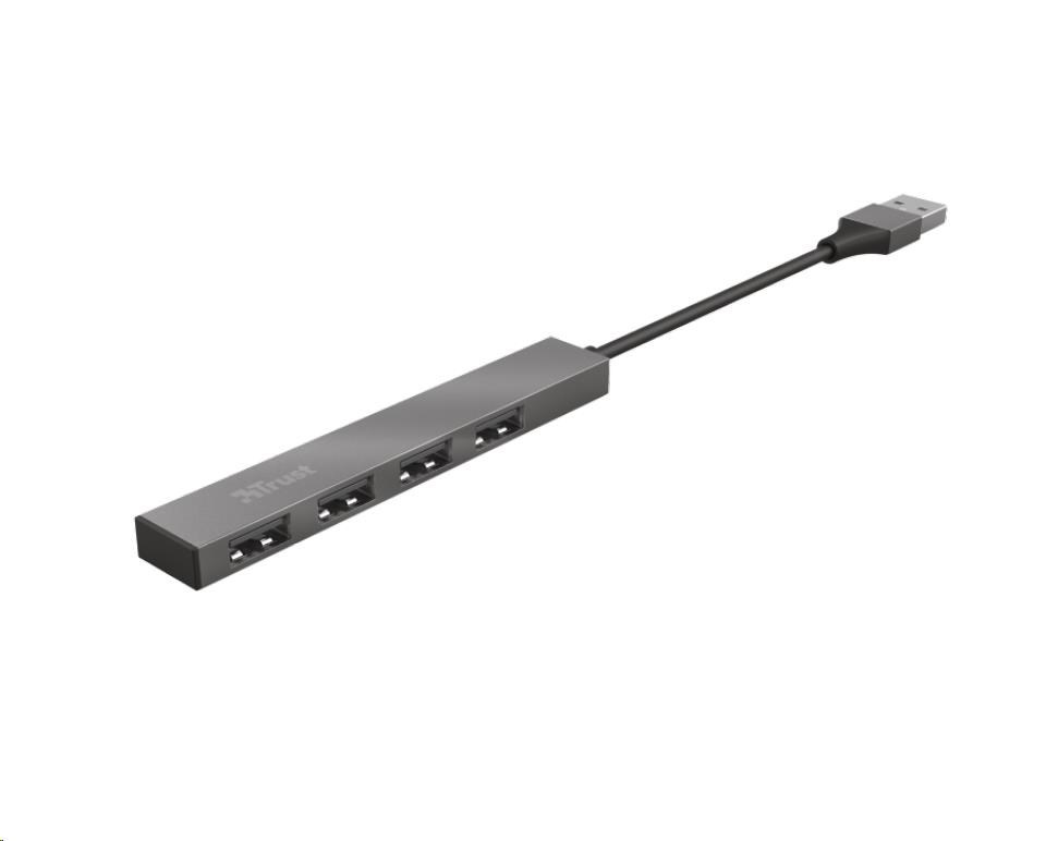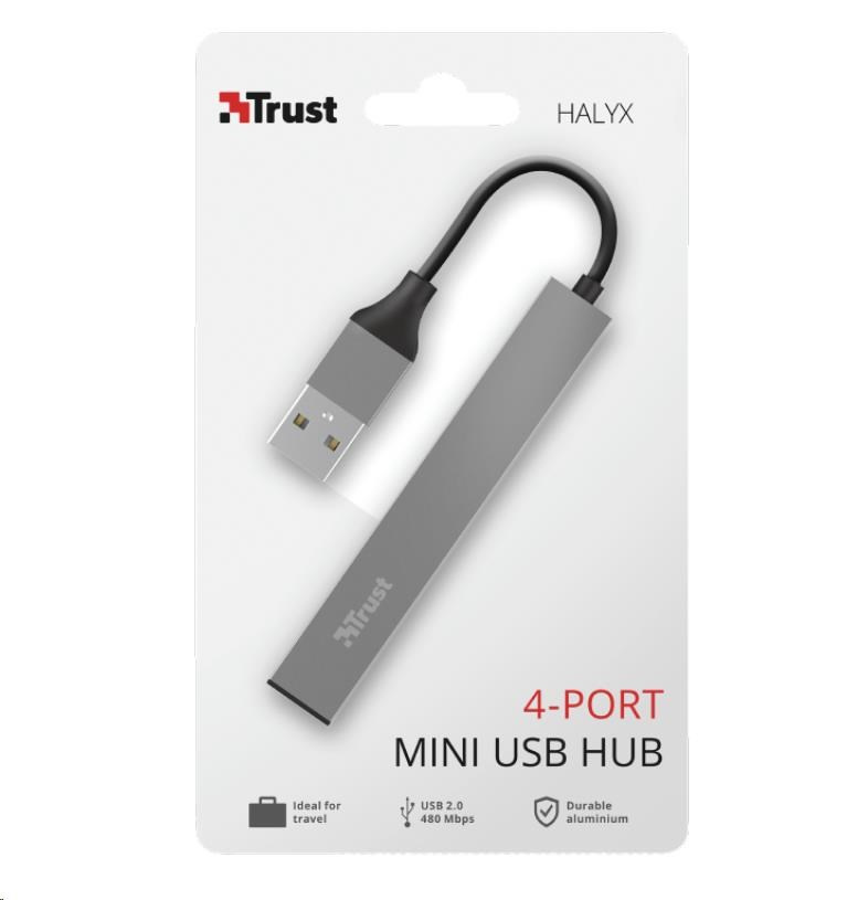 TRUST HALYX Hub, hliníkový 4-portový mini USB hub, 10 cm