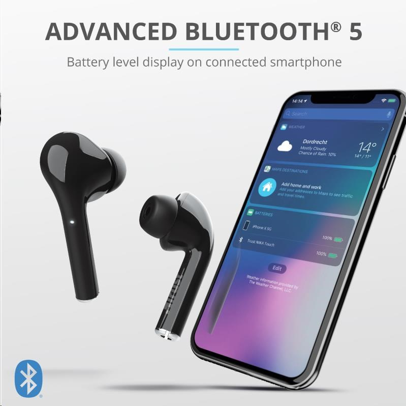 TRUST sluchátka Nika Touch Bluetooth Wireless Earphones - black