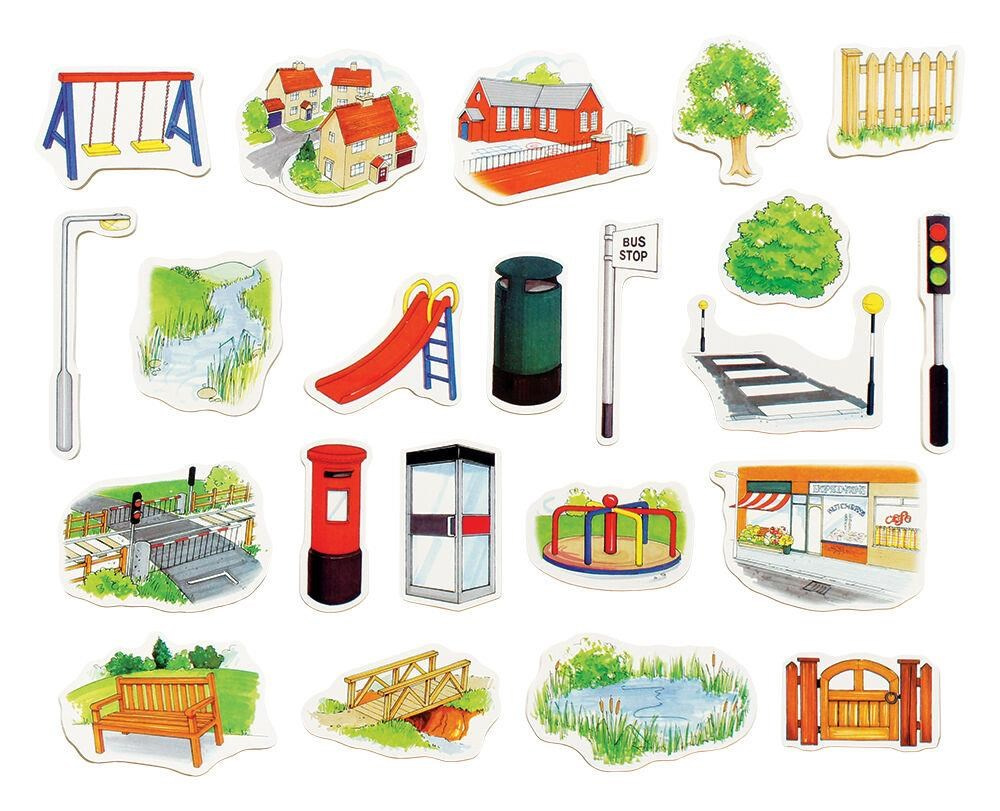 Balíček okolia pre Bee-Bot & Blue-Bot robota. Vybuduj si vlastné mesto pre Bee-Bota alebo Blue-Bota. Balíček obsahuje podložku, pouličné lampy, stromy, budovy a 22 drevených kusov pouličného nábytku.