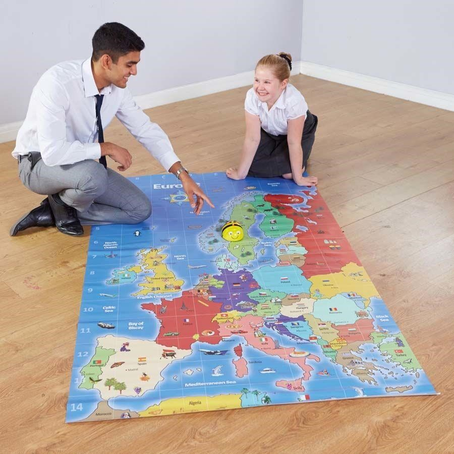 Bee-Bot & Blue-Bot podložka Európy. Cestujte po Európe a objavujte zákutia, o ktorých ste ešte nevedeli so svojím Bee-Botom Včekou alebo Blue-Botom Beruškou a touto fantastickou mapovou podložkou Európy. Deti sa budú baviť a dozvedia sa o európskych štátoch s touto detailnou a farebnou vinylovou mapou. Podložka má po stranách otvory na prichytenie na stenu, môžete ju použiť nielen ako podložku pre Bee-Bota a Blue-Bota, ale aj ako zavesnú mapu na stenu. Podložka je vyrobená z vinylu a PVC a môže sa používať aj v exteriéri.