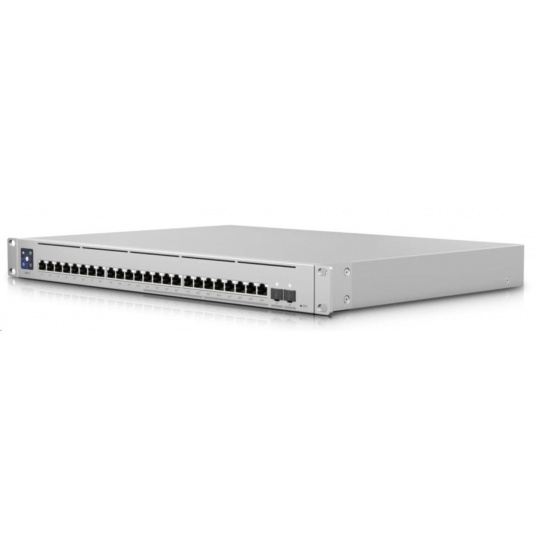 UniFi Switch Enterprise 24 PoE je spoľahlivý, spravovateľný 2.5-gigabitový prepínač L3 s prepínacou kapacitou 124 Gb/s, (12) 2.5-gigabitové porty LAN, ďalších (12) gigabitových portov LAN a dva porty SFP+ (10 Gb/s). Všetky ethernetové porty podporujú štandard 802.3af/at PoE-Out s výstupným výkonom 30 W/port a celkovým rozpočtom PoE 400 W. Okrem štandardných funkcií má prepínač aj 1,3" dotykový displej, ktorý poskytuje informácie o systéme, teplote, štatistikách portov, napájaní PoE a mnoho ďalších informácií. Prepínač je možné napájať štandardným 230V napájaním, ale aj prostredníctvom UniFi SmartPower RPS, ktoré slúži skôr na zálohovanie napájania v prípade výpadku interného zdroja.