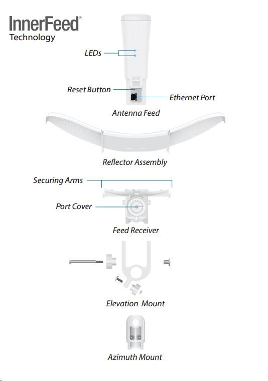 Popis produktu LiteBeam 5AC-Gen2 je 2x2 MIMO klientská stanice řady AirMAX AC pro pásmo 5GHz s anténním ziskem 23dBi, která doshauje přenosové rychlosti až 867 Mbps. Jednotka je kompatibilní jen s dalšími produkty airMAX AC a je určena pro venkovní použití s nejlepším poměrem cena/výkon v pásmu 5GHz. Uvnitř LiteBeamu se nachází výkonný MIPS procesor Atheros 74KC, kterému sekunduje 64MB operační paměti. Síťový port podporuje 10/100/1000 Ethernet a lze po něm jednotku napájet pasivním Gigabit PoE 24V/0,3A adaptérem, které je součástí balení (aktivní PoE dle 802.3af není podporováno). LiteBeam 5AC-Gen2 kombinuje proprietární hardwarové a softwarové technologie do nákladově dostupného zařízení. Mezi výhody patří InnerFeed technologie, airMAX TDMA protokol, vylepšený držák a vestavěná vodováha umožňující velmi rychlé a správné nasazení a také velmi kompaktní rozměry pro úsporu nákladů při přepravě. Management přes uMobile aplikaci Technici jistě ocení nově obsažené 2.4GHz WiFi rozhraní, které slouží k adminitraci skrze mobilní zařízení. K dispozici je aplikace UMOBILE pro Android i iOS. Novinkou u všech Gen2 produktů s airMAX ac protokolem je i nový operační systém airOS 8. Tento systém vykresluje v reálném čase konstelační diagram a hodnotu SNR. Obsah balení • Zařízení • Anténa • Držák antény • PoE napájecí zdroj 24V/0.3A • Napájecí kabel • Kovová stahovací páska Technické parametry Bezdrátové vlastnosti Citlivost [dBm]:-96 Frekvenční rozsah [MHz]:5150 - 5875 Bezdrátové frekvence:5 GHz WiFi standardy:airMAX ac Přenosová rychlost - 5GHz [Mb/s]:866 Vysílací výkon 5GHz [dBm]:25 Šifrování:WPA2 AES 5GHz MIMO:2 x 2 Typ antény:Vestavěná Počet vestavěných antén:2 Zisk antény [dBi]:23 Konektory a rozhraní Rychlost LAN:(1) 10/100/1000Mbps Gigabit LAN:Ano Ostatní:WiFi management radio Napájení Napájení přes PoE:24V DC Typy PoE:PoE-In (pouze) Max. spotřeba energie [W]:7 Fyzické charakteristiky Použití:Venkovní Tlačítka:Reset Provozní teplota [°C]:-40 až 70 Hmotnost [g]:980 Šířka [mm]:358 Výška [mm]:272 Hloubka [mm]:272 Hardware CPU:MIPS 74Kc Frekvence CPU [MHz]:650 RAM [MB]:64 Software Operační mód:Klient, AP Router, Access Point, Klient Router (wisp) Podpora IPv6:Transparentní (režim bridge) Výchozí IP adresa:192.168.1.20 Výchozí jméno a heslo:ubnt / ubnt.