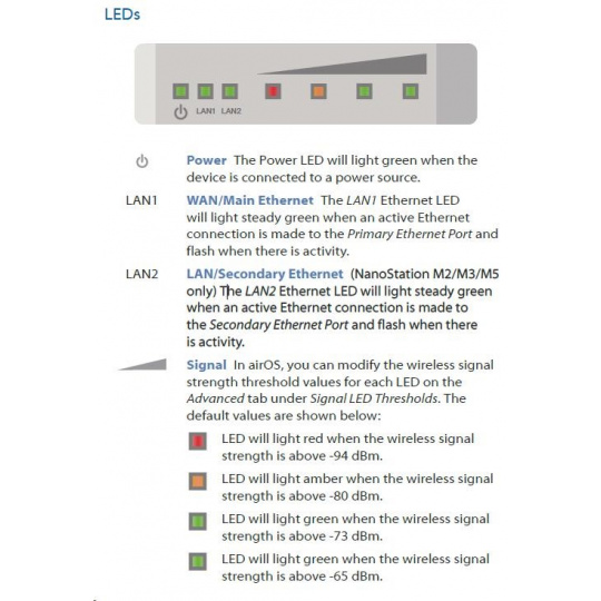 nanostation M5 má v porovnaní s verziou "locoM5" dve ethernetové siete.porty a výkonnejšiu anténu so ziskom 16 dBi. K jednotke môžeme napríklad pripojiť IP kameru. Možnosť distribúcie napájania PoE do tohto portu eliminuje potrebu inštalácie dvoch samostatných adaptérov PoE. PoE na druhom porte možno vypnúť/zapnúť softvérovo, takže môžete pripojené zariadenie na diaľku reštartovať. Adaptér PoE má tlačidlo "RESET" na obnovenie výrobných nastavení jednotky alebo režim TFTP na obnovenie poškodeného firmvéru. Technické špecifikácie: