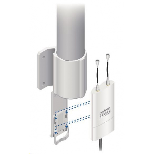 je to robustné 10dbi všesmerové anténne riešenie pre prístupové body pracujúce v pásme 2.4GHz a pomocou 802.11n v kombinácii s technológiou MIMO. Anténa má dva konektory RSMA typu žena. Súčasťou dodávky sú dva vodotesné pigtaily RSMA na pripojenie k jednotke Rocket M2, držiak pre túto jednotku a montážna súprava na stožiar, pozri. obr.