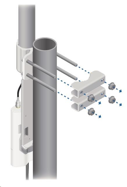 ide o robustné 10dbi všesmerové anténne riešenie pre prístupové body pracujúce v pásme 5 GHz a využívajúce štandard 802.11n v kombinácii s technológiou MIMO. Anténa má dva konektory RSMA typu žena. Súčasťou dodávky sú dva vodotesné pigtaily RSMA na pripojenie k jednotke Rocket M5, držiak pre túto jednotku a montážna súprava na stožiar, pozri. obr.