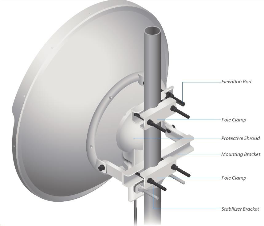 Montáž Univerzálny stĺpový držiak, držiak RocketM a RF prepojky odolné voči poveternostným vplyvom sú súčasťou dodávky