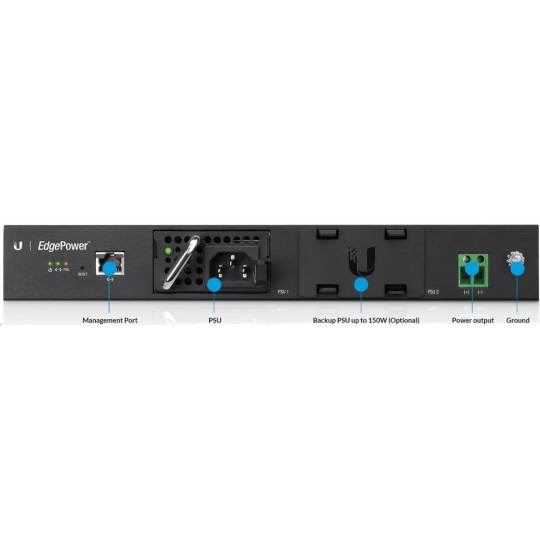 edgepower je výkonné rackové napájacie riešenie s webovou správou vhodné na napájanie smerovačov a prepínačov EdgePoint. EdgePower obsahuje 2 šachty pre modulárne napájacie zdroje, ktoré možno zlúčiť prostredníctvom riadenia (max. výkon 300 W) alebo automaticky zálohovať (max. výkon 150 W). Napájacie zdroje sú hot-swap a možno ich vymeniť za chodu.