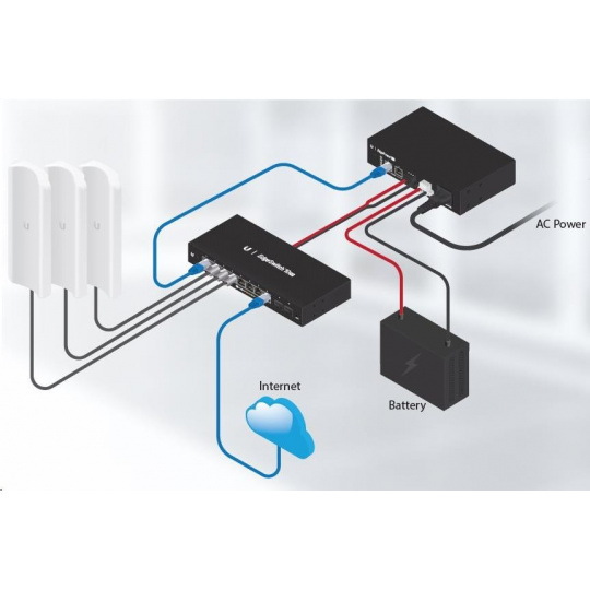 na pripojenie napájaných zariadení sú k dispozícii 2 ethernetové porty s pasívnym 54V PoE Out, rýchlosťou 100 Mb/s a 1 výstup na svorkovnicu. EdgePower možno spravovať prostredníctvom aplikácie UNMS alebo vlastného webového rozhrania. Samozrejme, k dispozícii je podpora protokolu SNMP.