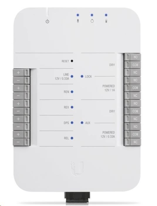 rozbočovač UniFi Access Hub je základným komponentom pri inštalácii prístupového systému UniFi. UniFi Access Hub je inteligentný jednodverový IP kontrolér, ktorý je kompatibilný s väčšinou elektrických zámkov, magnetických zámkov a rôznym 12 V príslušenstvom, ako sú pohybové senzory, tlačidlá a alarmy. Inštalácia je veľmi rýchla a jednoduchá a ponúka jednoduchú správu používateľov, návštevníkov, plánov a úrovní alebo prístupových oprávnení prostredníctvom UniFi Access Controller. Rozbočovač je napájaný prostredníctvom PoE, ktoré nie je súčasťou dodávky.