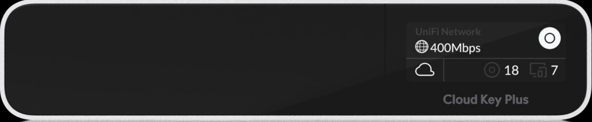 Popis produktu UniFi Cloud Key+ SSD kombinuje to nejlepší z lokální a cloudové správy zařízení. Má předinstalované UniFi aplikace (UniFi Network, UniFi Protect, UniFi Access, UniFi Connect a UniFi Talk) pro správu a nastavení UniFi produktů. Přední displej zobrazuje základní informace o vaší síti, například počet připojených AP a klientů, nebo čas poslední detekce pohybu. Podporuje Bluetooth pro rychlou konfiguraci přes mobilní aplikace. Video záznam z kamer se ukládá přímo na vestavěný 1 TB SSD, který lze vyměnit za disk s vyšší kapacitou. Cloud Key+ podporuje pouze disky, které fungují s napájením 5 V. Disky, které vyžadují dodatečné nebo vyšší napájení, nejsou podporovány. Navíc má integrovanou baterii, která při ztrátě napájení zaručí bezpečné ukončení všech běžících procesů a vypnutí zařízení. Vlastnosti • Přední displej • Zabudovaná baterie pro bezpečné vypnutí • Napájení přes PoE 802.3af (48 V injektor) nebo USB-C (9V / 2A DC adaptér) - nejsou součástí balení • Jednoduché nastavení pomocí telefonu Počet podporovaných kamer: (24) HD, (14) 2K, (8) 4K Obsah balení • Zařízení Technické parametry Konektory a rozhraní Sériový port:RJ45 Napájení Napájení přes PoE:802.3af Typ napájení:PoE, USB-C Max. spotřeba energie [W]:9,6 Napájení přes konektor/svorkovnici:9V / 2A Fyzické charakteristiky Provedení:Desktop Tlačítka:Reset, napájení Provozní teplota [°C]:0 až 35 Hmotnost [g]:560 Šířka [mm]:131 Výška [mm]:27 Hloubka [mm]:134 Hardware CPU:ARM Cortex-A53 RAM [MB]:3 Software Předinstalovaný kontroller:UniFi Protect, UniFi Network, UniFi Access.
