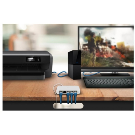 Jeho najväčšou výhodou je gigabitový POE IN na porte 1 na jednoduché rozšírenie siete aj na miestach, kde nie je možné vybudovať elektrickú zásuvku. Prepínač môže byť napájaný aktívne (802.3af/at) a pasívne pomocou adaptéra 44-57 V. Okrem PoE možno prepínač napájať aj prostredníctvom adaptéra USB-C so špecifikáciou 5 V/1 A.