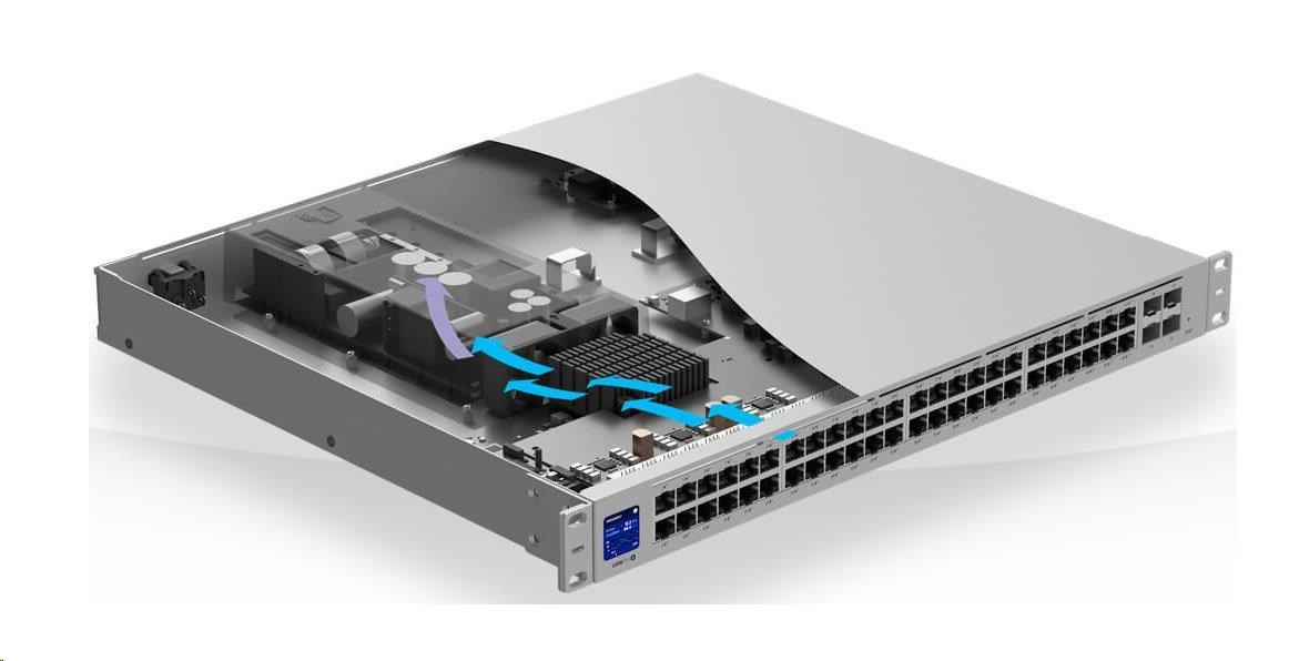 Druhá generácia prepínačov UniFi prináša množstvo zmien a vylepšení, prepínače boli od základu prepracované. V porovnaní s prvou generáciou sa výrazne zlepšil prietok vzduchu používaný na chladenie, takže je až 4-krát tichší* ako prvá generácia.