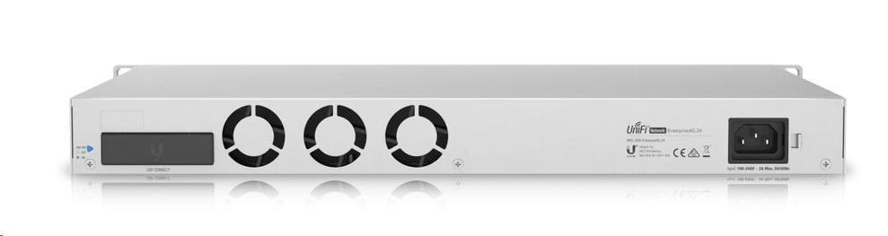 USW-EnterpriseXG-24 je plne spravovateľný gigabitový prepínač L3 s 24 × 100M/1G/2.5G/5G/10G LAN porty a dva SFP28 porty s prenosovou rýchlosťou 1/10/25 Gb/s. Okrem štandardných funkcií má prepínač aj 1,3" dotykový displej, ktorý poskytuje informácie o systéme, teplote, štatistikách portov a mnoho ďalšieho.