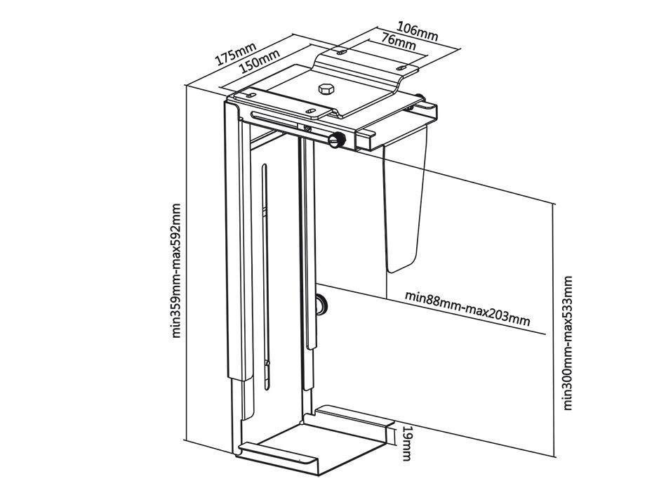 - výška PC od 359mm do 592mm