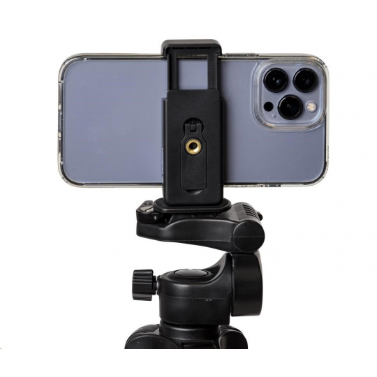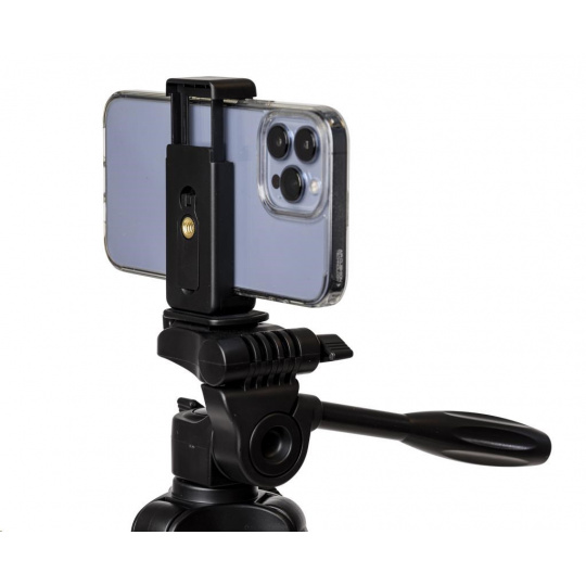Ľahký hliníkový statív s trojcestnou otočnou hlavou a držiakom na smartfón. Dosahuje maximálnu výšku 123 cm a unesie až 2 kg. Tento statív je ideálny pre tých, ktorí používajú menší fotoaparát alebo smartfón