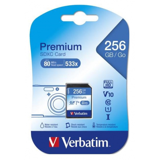 Karta VERBATIM SDXC 256 GB Class 10, UHS-1 (R:80/W:10 MB/s)