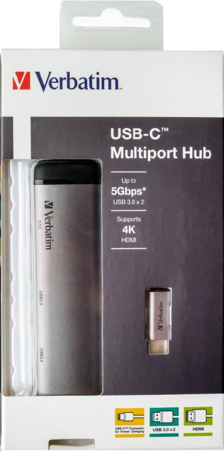 VERBATIM 49140 Multiportový HUB USB-C, 2x USB 3.0, 1x USB-C, HDMI, šedý dok