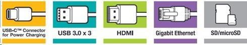 | Rozhranie | USB-C (USB 3.1 GEN 1), 3 x USB 3.0, HDMI, Gigabit Ethernet, SD/microSD |
