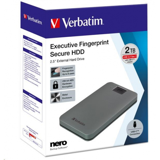 VERBATIM externý HDD 2.5" 1TB, Executive Fingerprint Secure, USB 3.2 Gen 1 / USB-C, sivá