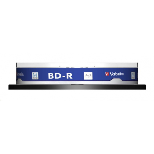 Verbatim M-Disc BD-R Verbatim M-Disc predstavuje nový štandard v oblasti digitálneho ukladania dát, ktorý je navrhnutý na uchovávanie a ochranu súborov vyrytím informácií do patentovanej vrstvy, ktorá je pevná ako skala a odolná voči svetlu, teplote a vlhkosti. Testovanie podľa priemyselnej normy ISO/IEC 10995 spoločnosťou Millenniata ukázalo, že očakávaná životnosť diskov M-Disc DVD je 1 332 rokov, pričom len 5 % diskov vykazuje známky straty údajov po 667 rokoch. Priemerná dĺžka života je preto niekoľko sto rokov. To znamená, že keď ukladáte svoje vzácne fotografie, hudobné knižnice, lekárske dokumenty alebo iné údaje, môžete si byť istí, že sú na disku, ktorý vydrží celé generácie. Vďaka vynikajúcej kompatibilite možno na disk M-Disc BD-R zapisovať a čítať z neho vo všetkých súčasných mechanikách Bluray. Parametre: Kapacita: 25 GB Rýchlosť: 4x Spôsob balenia: balenie po 10 ks na vreteno Povrch disku: potlačiteľný na atramentových tlačiarňach Tlačová plocha: 40 - 118 mm..