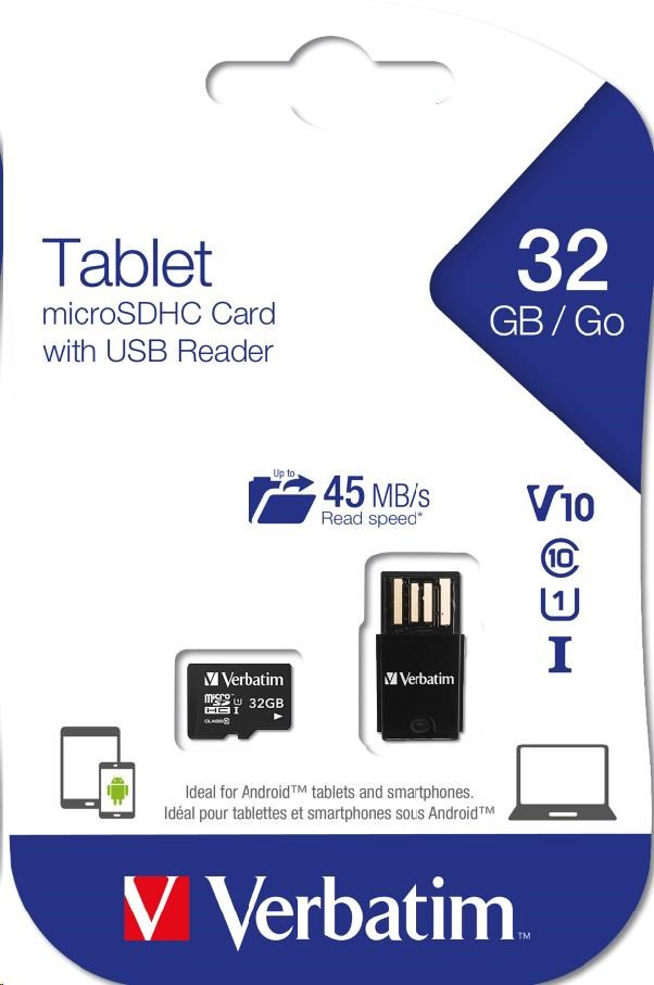 VERBATIM Tablet microSDHC C10/U1 s USB čítačkou 32GB (R:45MB/s, W:10MB/s)