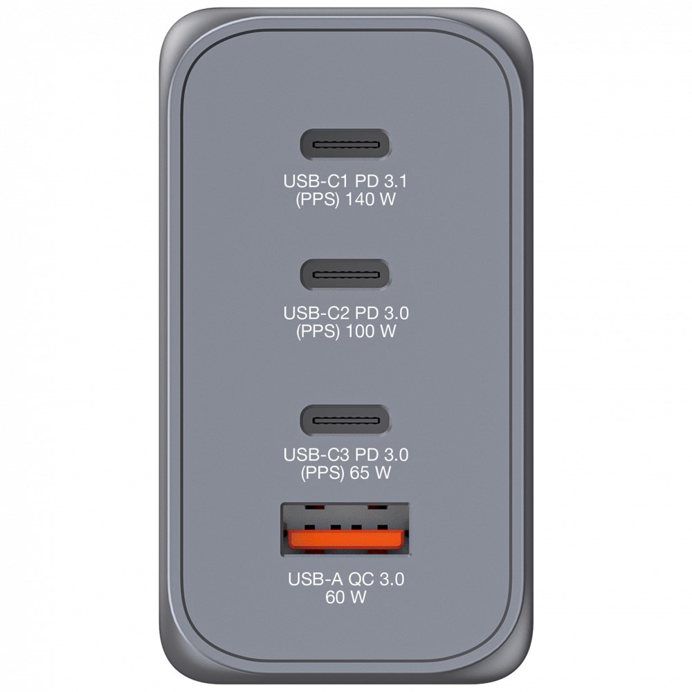 Verbatim GaN nabíjačka do siete s výkonom 240 W v elegantnom dizajne, ktorý sa zmestí do dlane, kombinuje jeden port USB-C PD 140 W, jeden port USB-C PD 100 W, jeden port USB-C PD 65 W a jeden port USB-A QC 3.0. Ideálna do kancelárie, na domáce použitie alebo na cesty, kde dodá energiu vášmu notebooku, tabletu, smartfónu, herným a mnohým ďalším zariadeniam.